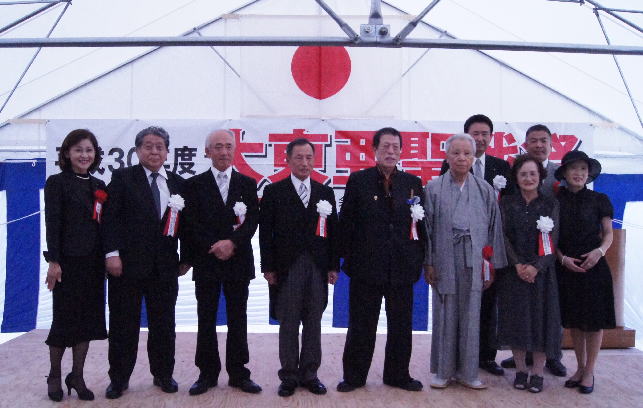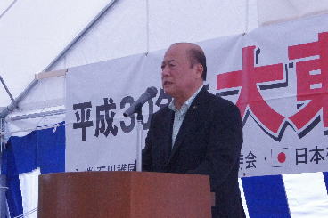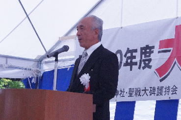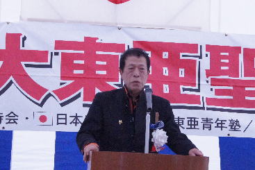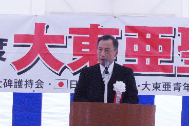 続いて 諸橋 茂一・大東亜聖戦大碑護持会実行委員長(石川の教育を考える県民の会会長・鰍jBM社長) 田母神俊雄・大東亜聖戦大碑護持会会長(元航空幕僚長) 元谷外志雄・大東亜聖戦大碑護持会最高顧問(アパグループ代表) 御来賓を代表して 中村勲・石川県議会議員の御挨拶がありました。 |