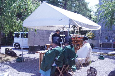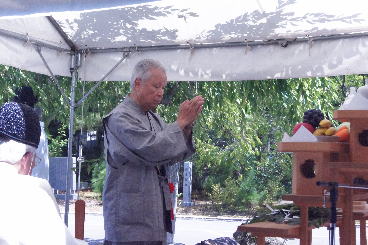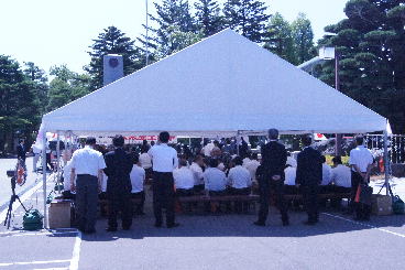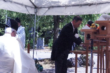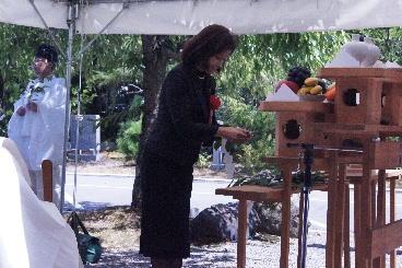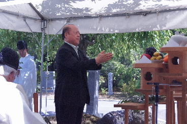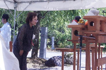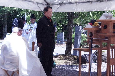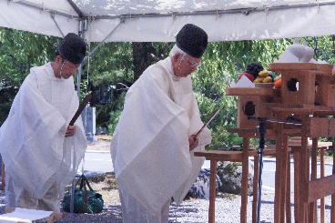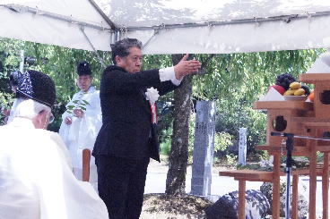 | 開会の辞、国歌斉唱に引き続き、神事が執り行われ、参加者による玉串奉奠が行われました。 |