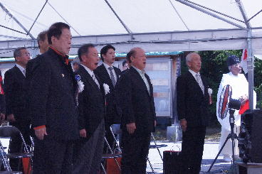 その後、歌手の山口采希(あやき)さんと 軍歌愛好会の松木國俊会長による 鎮魂の歌奉納が行われ 最後に「海ゆかば」を参加者全員で斉唱し英霊に奉納しました。 |